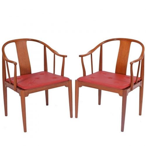Kursi Cafe Jati Pair dengan bantal kulit merah yang dirancang unik dan elegan untuk interior cafe Anda.