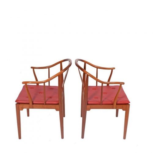 Kursi Cafe Jati Pair dengan bantal kulit merah yang dirancang unik dan elegan untuk interior cafe Anda. Kursi Cafe Jati Pair dibuat dengan kayu jati solid berkualitas.