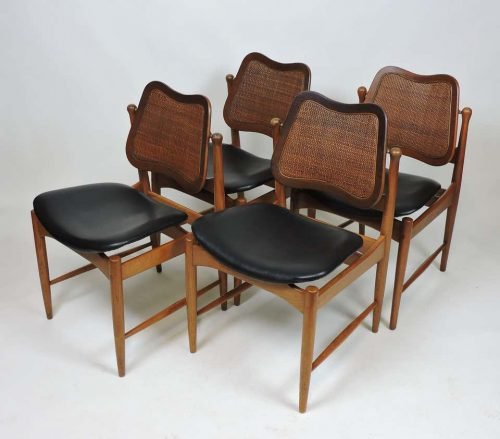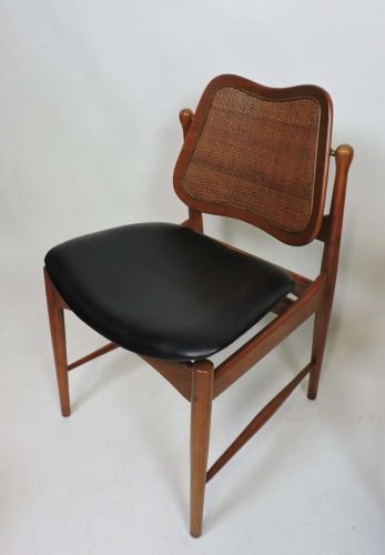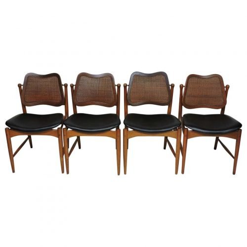 Kursi Cafe Kayu Unik Arne Vodder ini memiliki kursi terapung yang dilapisi kain hitam dan punggung inset dengan tongkat yang berputar pada perlengkapan lain untuk kenyamanan. Kursi Cafe Kayu Unik Arne Vodder cocok untuk dekorasi cafe Anda.