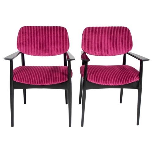 Kursi Cafe Unik With Burgundury tempat duduk serta sandarannya dilapisi dengan kain beludru yang halus dan modern.