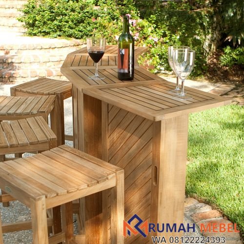 Set Meja Bar Outdoor 4 Kursi Kayu Jati Solid memberikan ruang outdoor Anda lebih mewah dan nyaman.